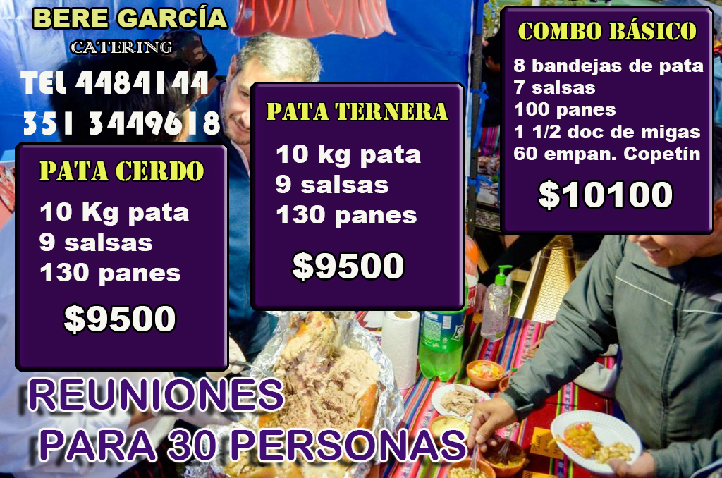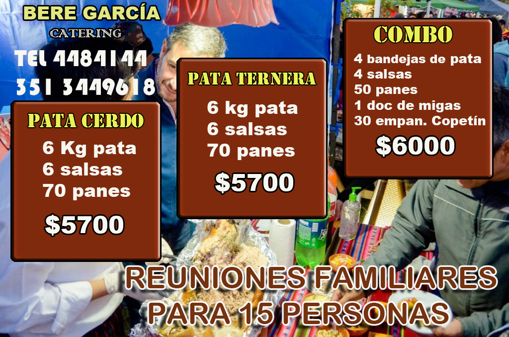 1 Pata 8 bandejas + 100 panes + 7 salsas + 60 empanaditas + 1 1/2 doc de miga = $10100